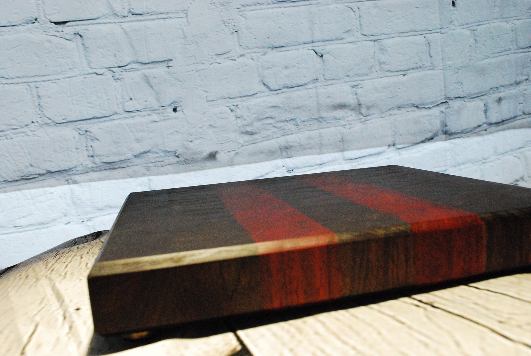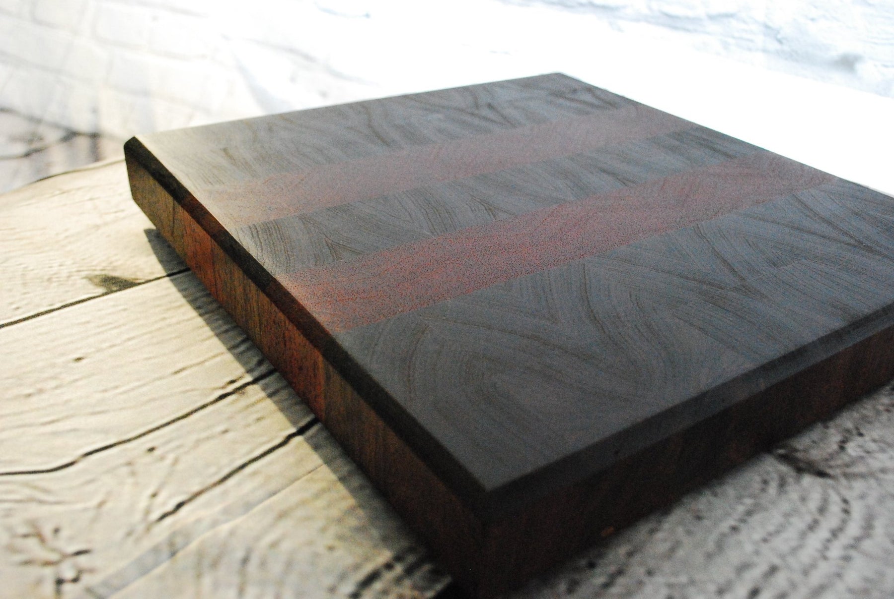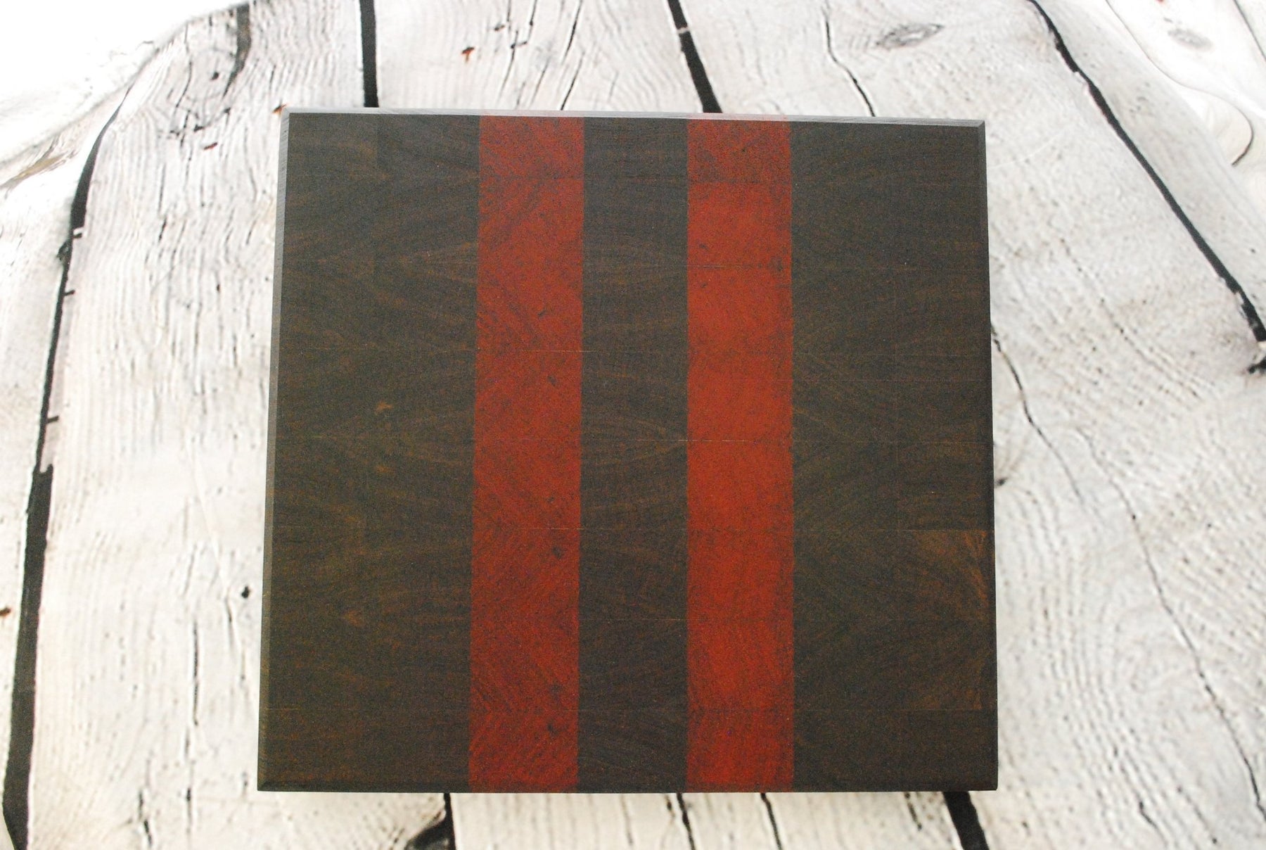 This luxury End Grain Veggie Cutting Board is a premium kitchen tool, meticulously crafted for both durability and aesthetic appeal. Measuring 12 ⅞ inches by 12 inches with a thickness of 1 ⅝ inches, this cutting board features an end grain construction, which is renowned for its superior resilience and knife-friendly surface that self-heals from cuts and scratches.This masterpiece of craftsmanship combines the rich tones of Walnut with the vibrant hues of Padauk, creating a striking contrast that adds sophistication to your kitchen. The beautiful mosaic of wood fibers enhances the board's longevity while providing an elegant and functional space for all your chopping and slicing needs. Perfectly suited for any culinary task, this cutting board seamlessly blends practicality with elegance, making it an essential addition to any kitchen.